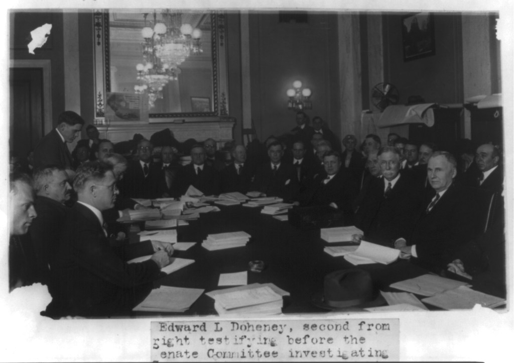 Carl Magee testified before the Senate Public Lands Committee in late November 1923 and early February 1924. His testimony changed the Naval oil lease investigation from a political dispute into a bribery probe. On January 22, 1924, oil mogul Edward Doheny appeared before the committee and admitted “loaning” Interior Secretary Albert Fall $100,000 while they were negotiating drilling in the federal reserve. A week later, the Senate passed a resolution calling on President Coolidge to appoint a special counsel and to begin court action to cancel the Naval oil contracts. Three days after that, Interior Secretary Albert Fall came before the committee and refused to answer any more questions on the grounds that he might incriminate himself.